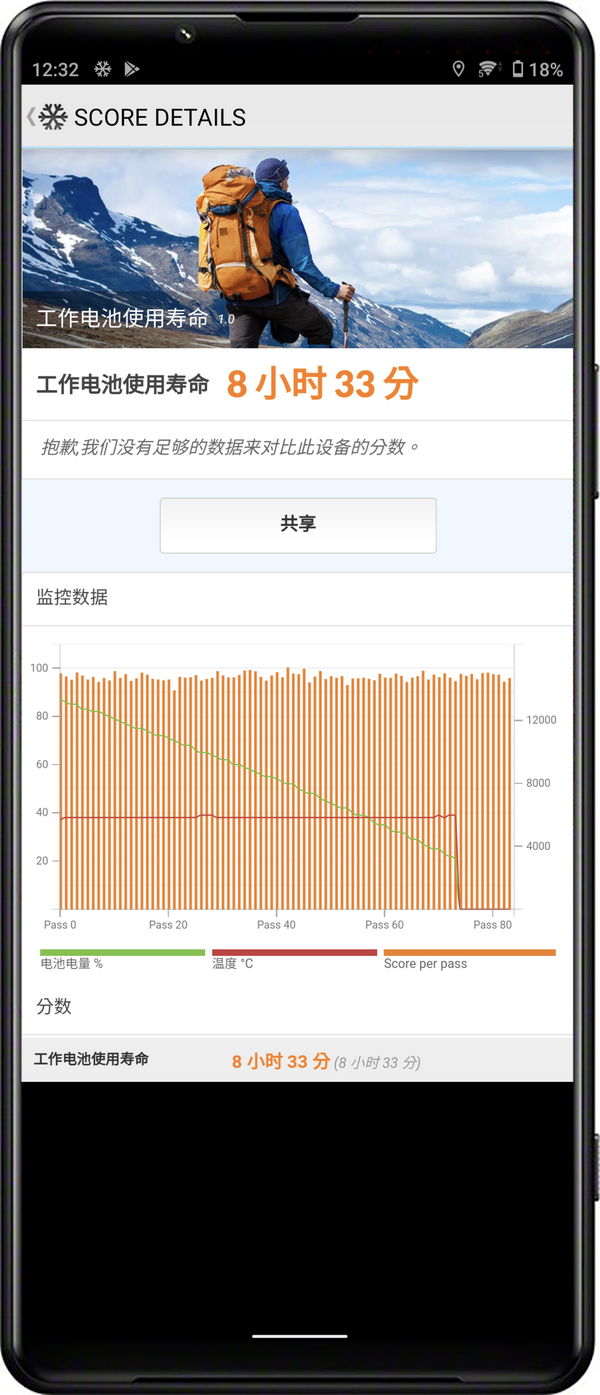阿輝實際測試 Xperia 1 III 內建電池容量為 4500 mAh,實測電力部分以 PCMARK 做標準測試,測試 80% ~ 20% 間的電力運行,模擬上網、工作、遊戲的混合應用,測試方式與標準可以參考這篇說明。