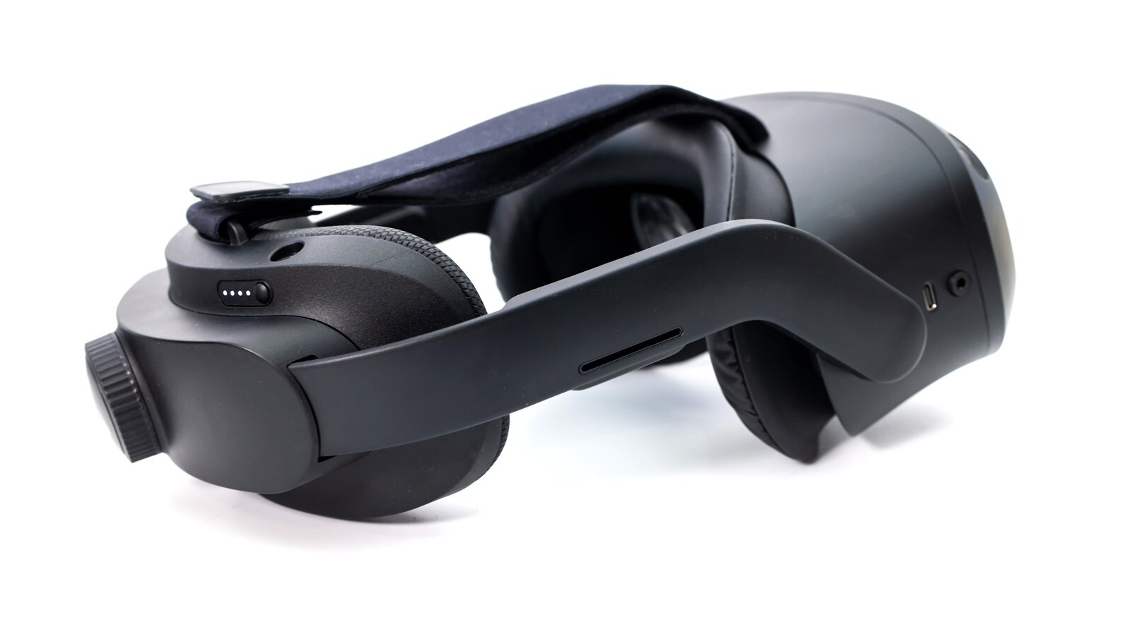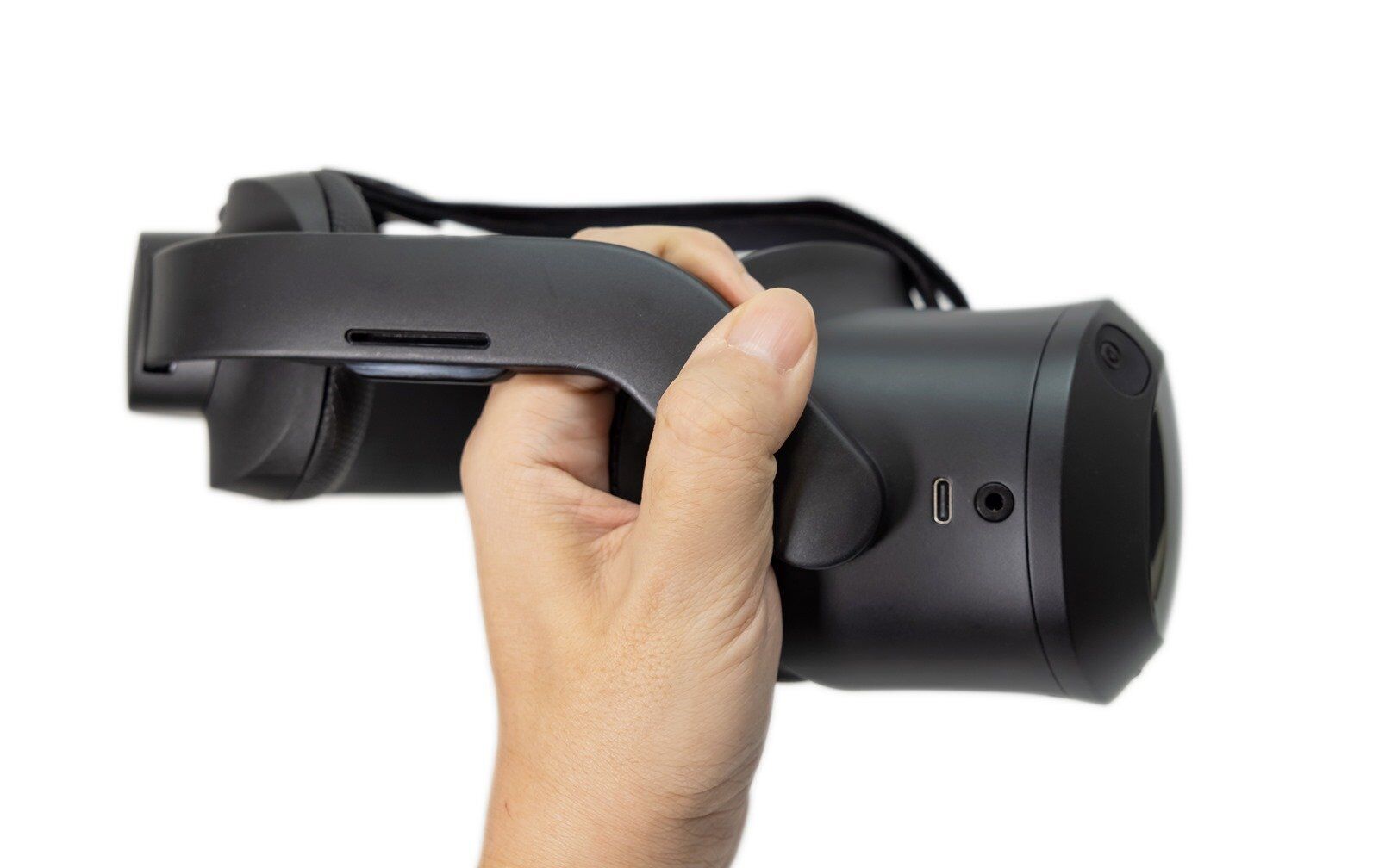 耳機部份的設計也是一絕,除了一樣可以透過 3.5mm 接口使用自己的耳機配件之外,VIVE Focus 3 直接在頭戴支架中整合了揚聲器在其中,可以看成開放式的耳機設計,因此可以提供方便直接聲音效果,同時也不會像是耳機的封閉無法得知外界狀況的困難。