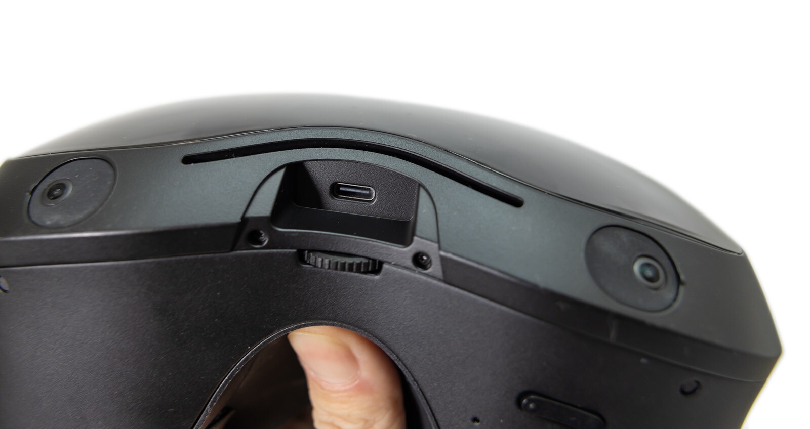 前方的 Type C 並不能替 VIVE Focus 3 充電有點可惜,設計反而是給雙手把用的 USB C 充電接口