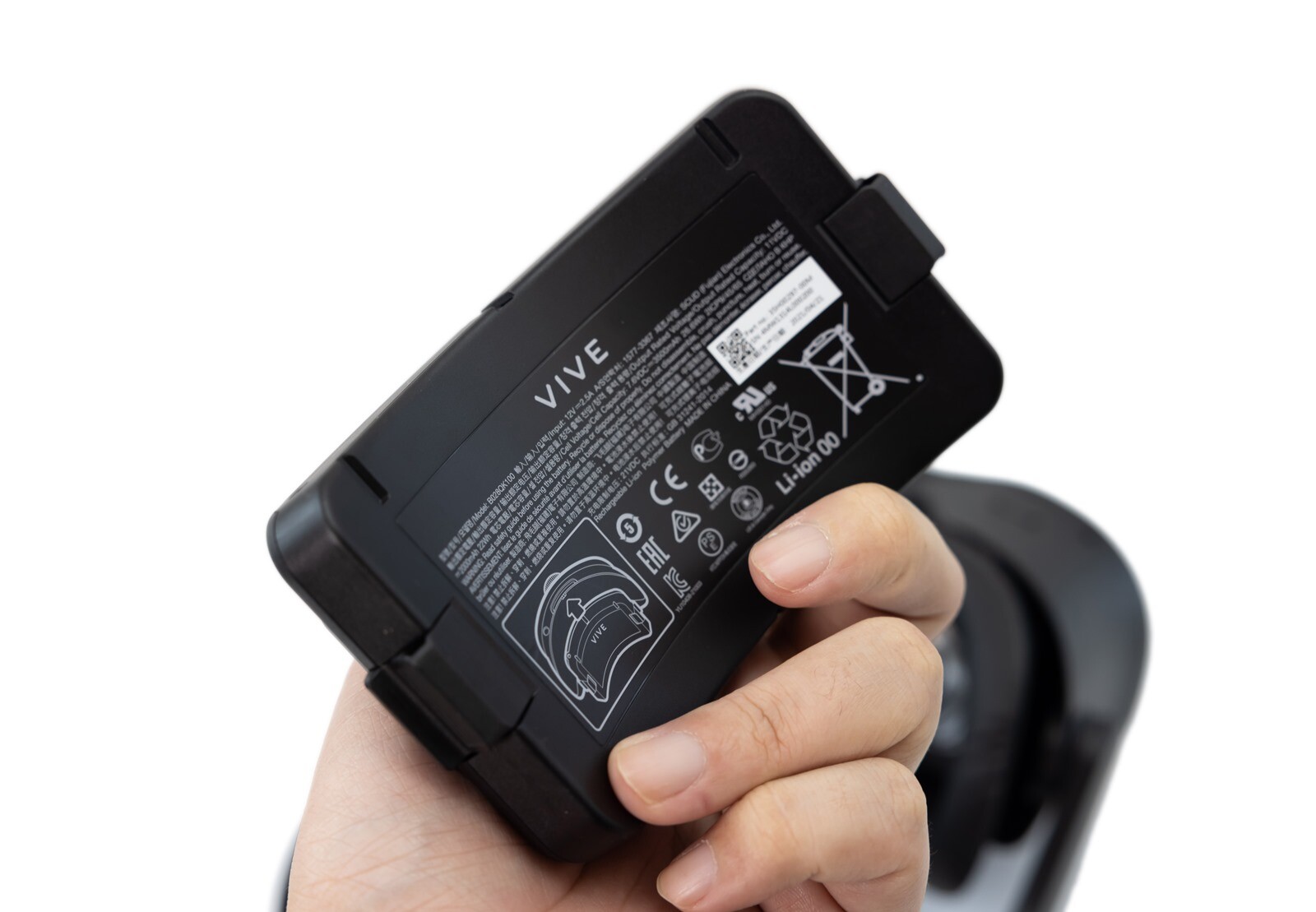 非常特別而且絕妙地將電池放在機器後方,也就是頭戴後腦杓的位置,這樣的設計讓 VIVE Focus 3 機身前後的配重達到了 1:1 平衡的設計,加上大型的軟墊讓 VIVE Focus 3 就是迄今給阿輝配戴舒適感最佳的 VR 頭戴設計沒有之一。