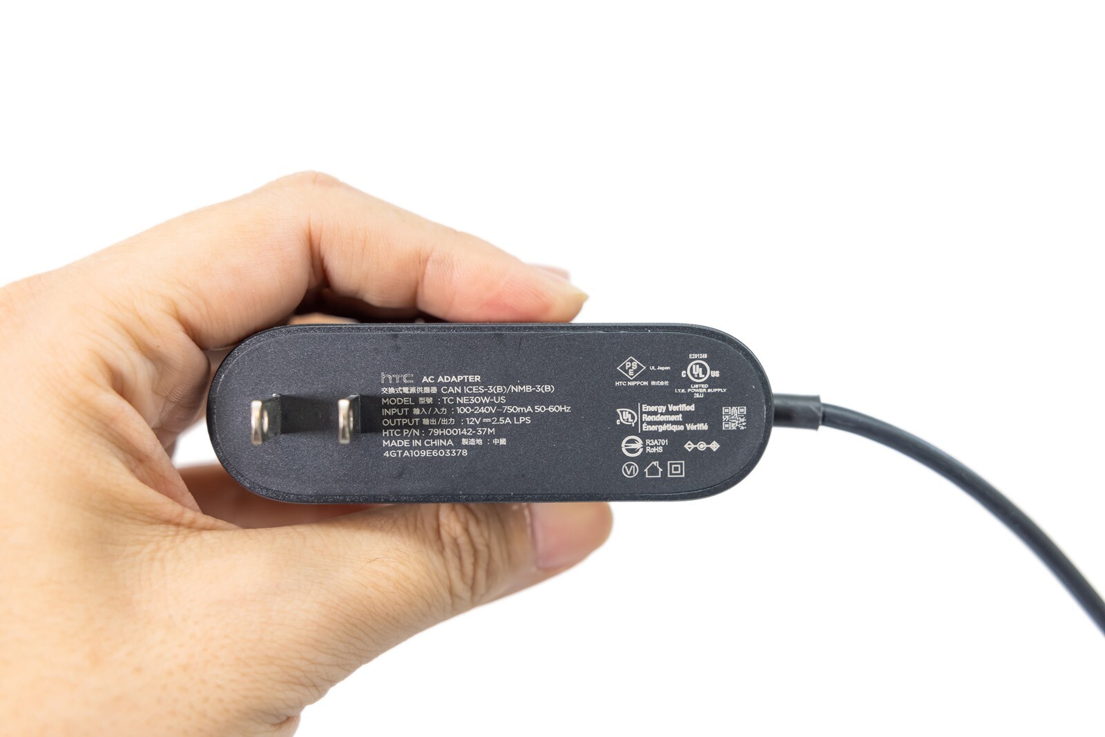 不過 VIVE Focus 3 充電的設計可能是考慮設備共用與耐用的考量,是採用了 12V/1.5A 的圓形 DC 充電接口,猜測對於企業商業用戶應該會有單獨的電池充電器設備?