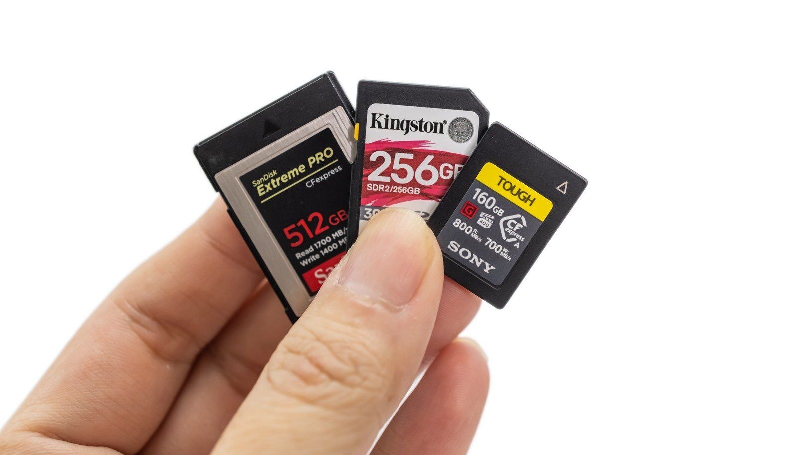 這一次阿輝測試的記憶卡,Sandisk 的 CFexpress Type B 記憶卡(容量為 512GB),以及 Sony 原廠(目前也沒副廠)的 CFexpress Type A 記憶卡(容量為 160GB,也是目前 CFexpress Type A 記憶卡最大容量的選擇)
