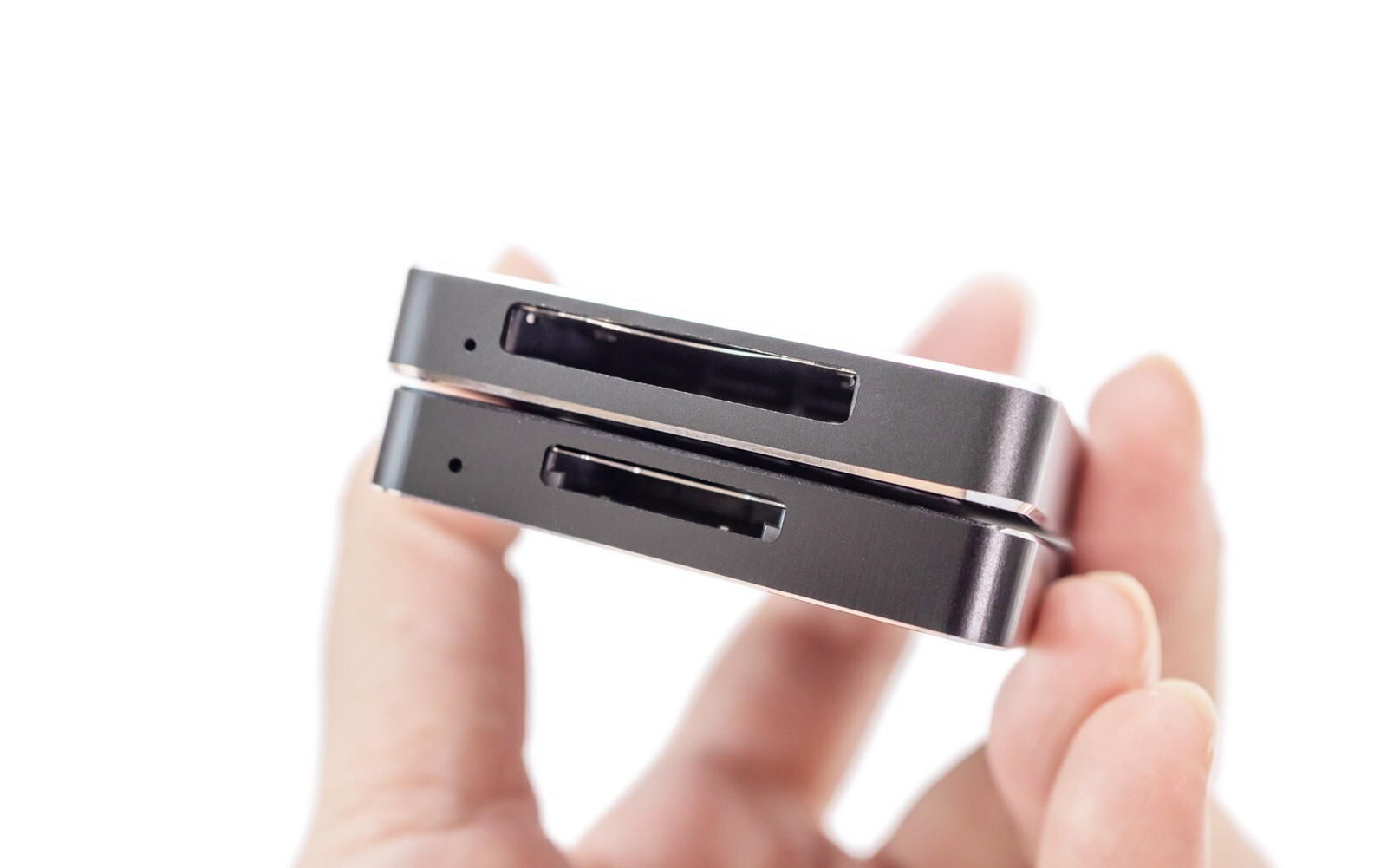 外型差異大概就是 CFexpress Type B 讀卡機偏後方的部分有多一道裝飾用的金屬切割線