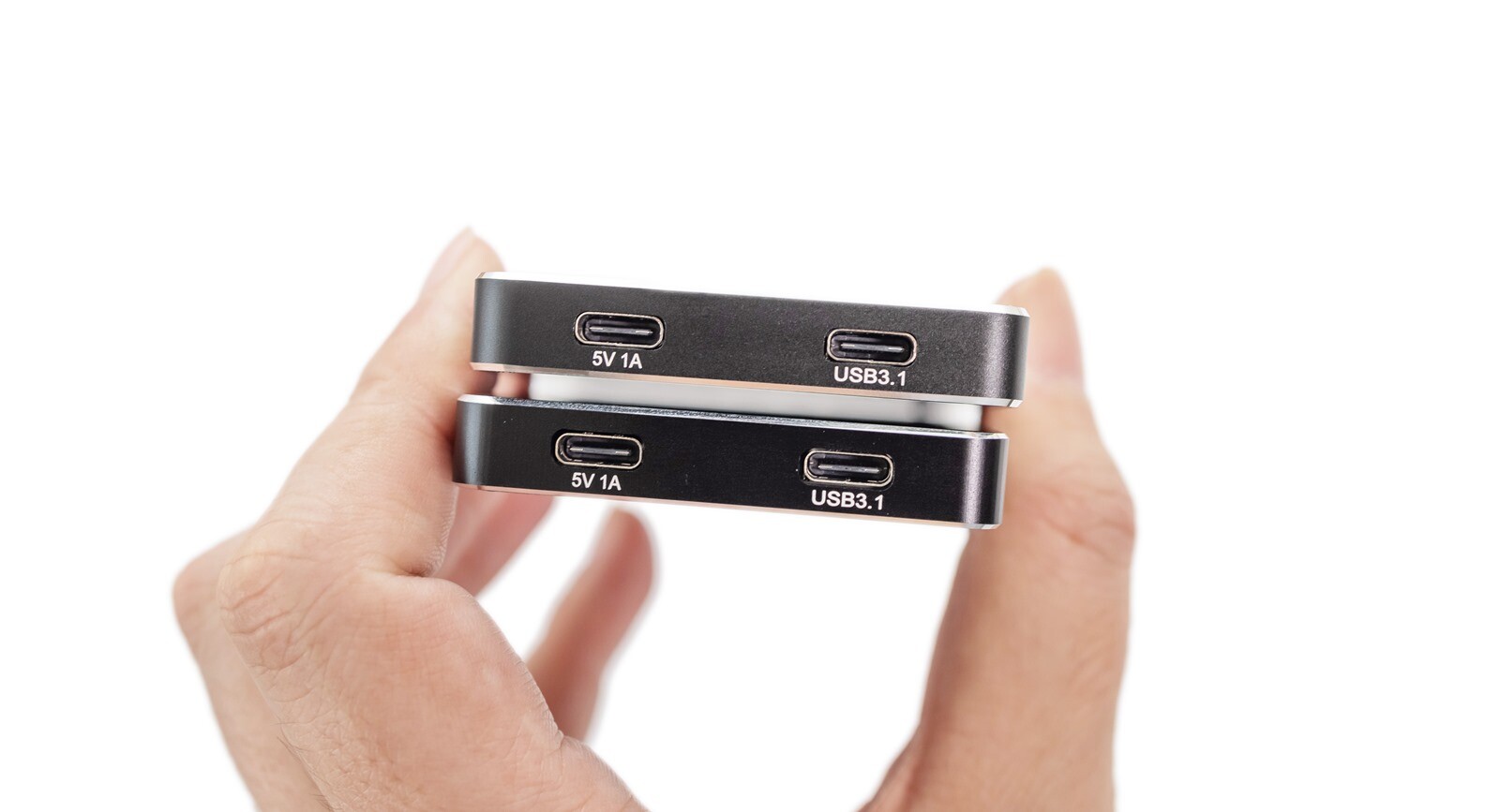 比較特別的是後方除了 USB 3.1 Gen 2 (10Gbps) 的 Type C 傳輸接口之外,還有一組輔助用的 5V/1A 電源接口