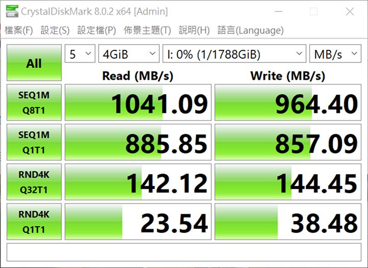 小新 Pro 14 (Thunderbolt),不過這組發現隨機小檔寫入的速度異常的低,甚至比 USB 3 還慢,比較懷疑是筆電驅動問題(裝 Windows 11 的測試機)這應該會再找幾台對照筆電測試,之後再和大家更新報告
