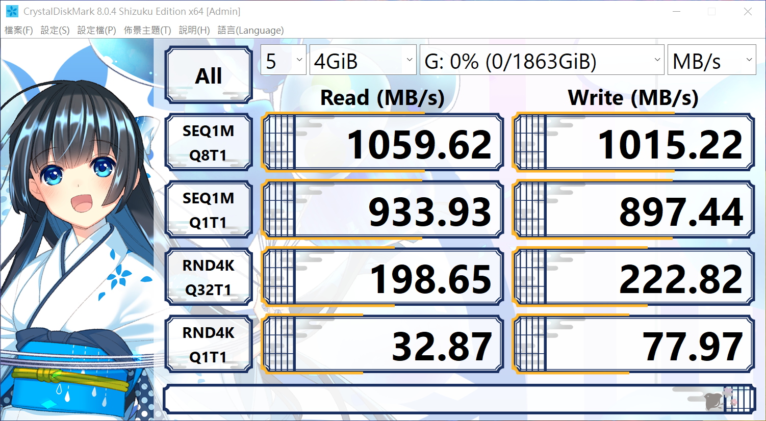 有點意外反而是這組 PM981 表現最好,寫入速度甚至比原廠表現還優異,寫入相近 2000MB/s