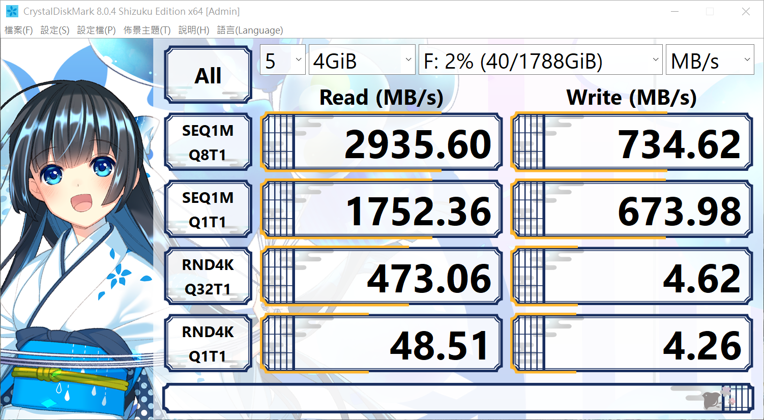實測可達 2637MB/sec 讀取,1408MB/s 寫入的高速表現