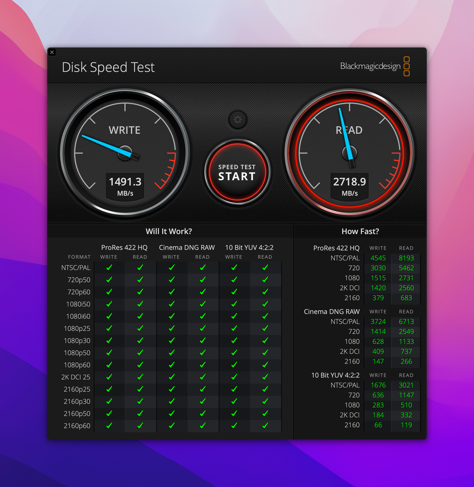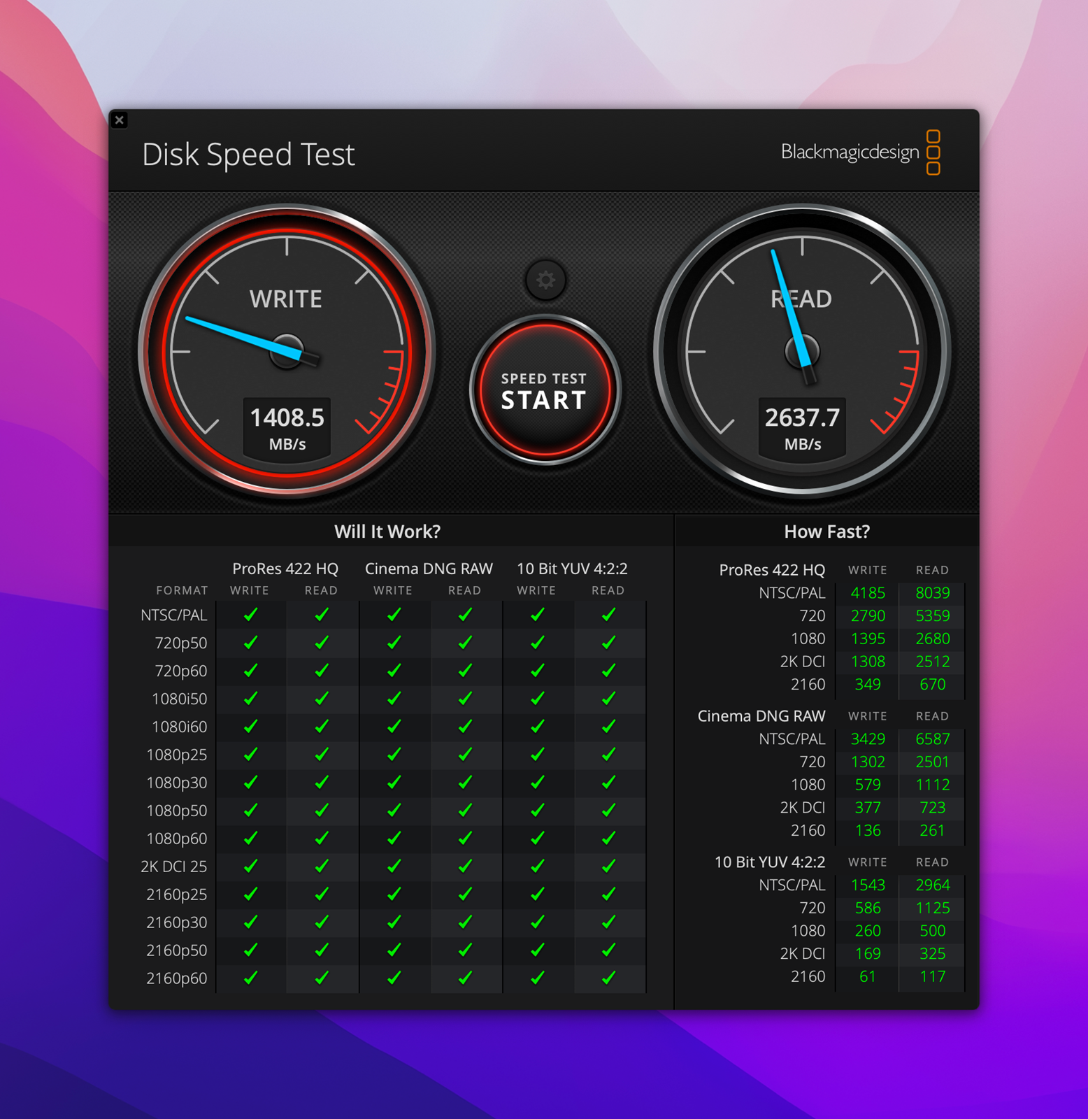 測速看看吧~ 首先是搭配 M1 Macbook Pro 測試 (Thunderbolt)
