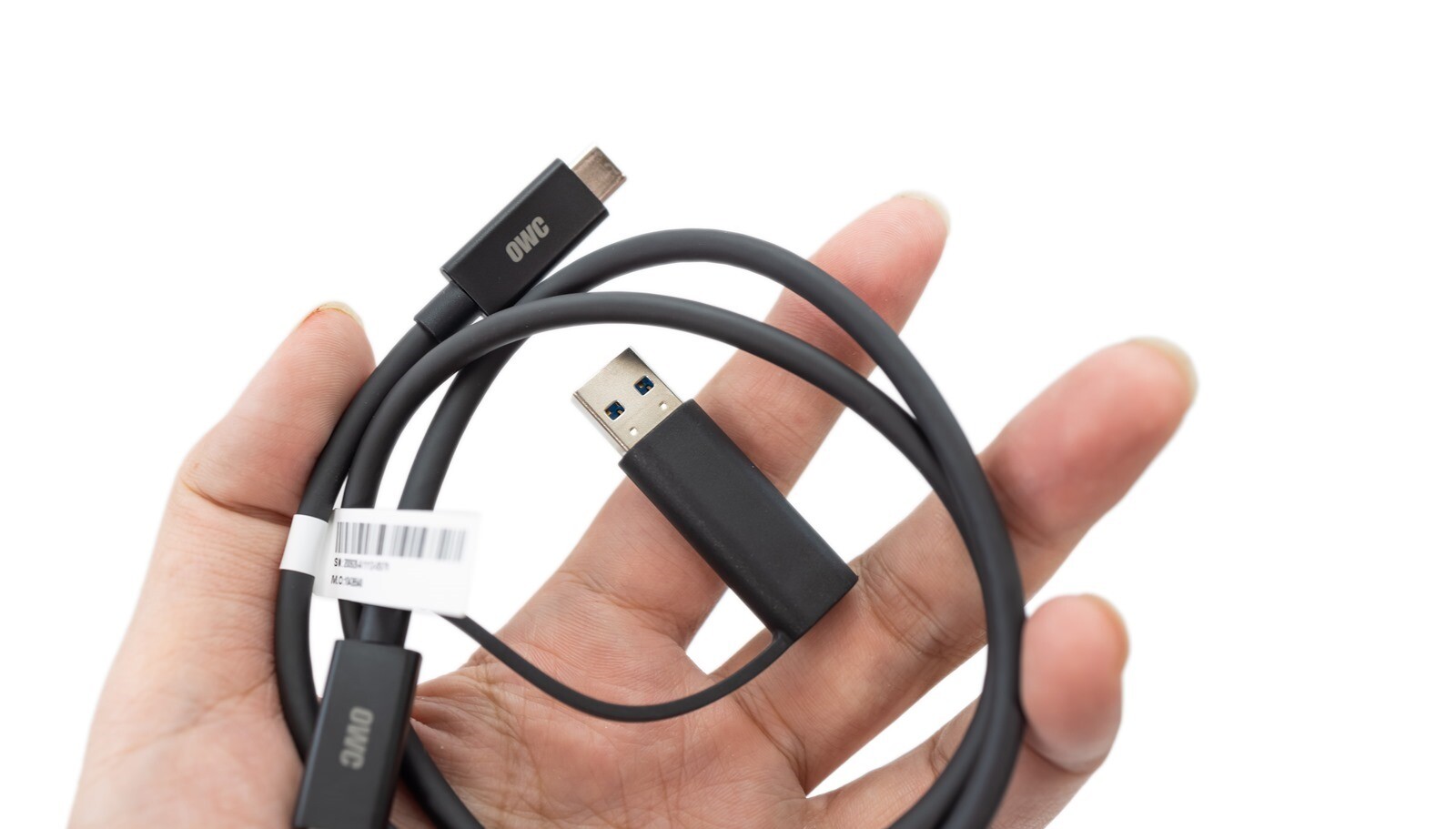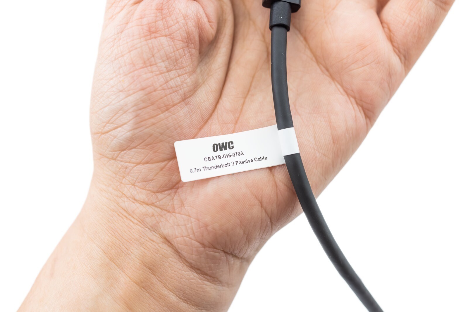 盒裝內容物倒是非常簡單,除了 OWC Envoy Pro FX 本體與說明書、紙卡之類的,就是多合一的 Thunderbolt/USB 整合線材