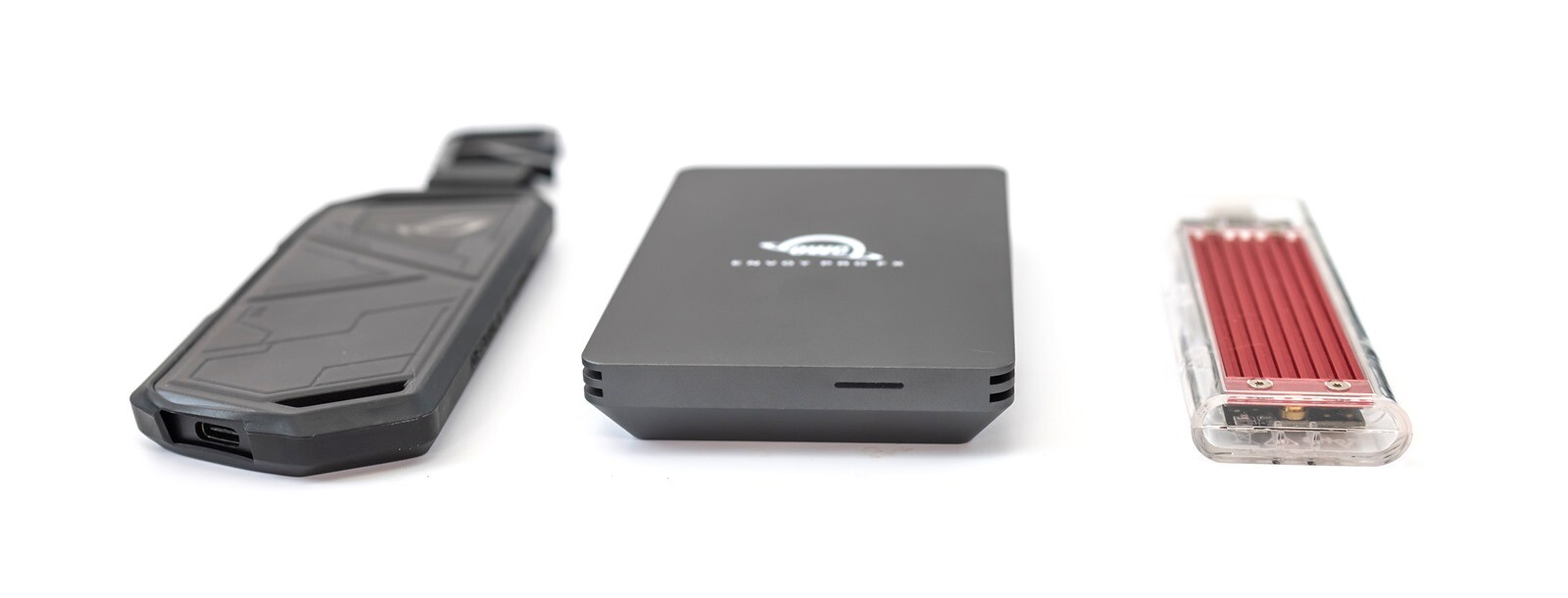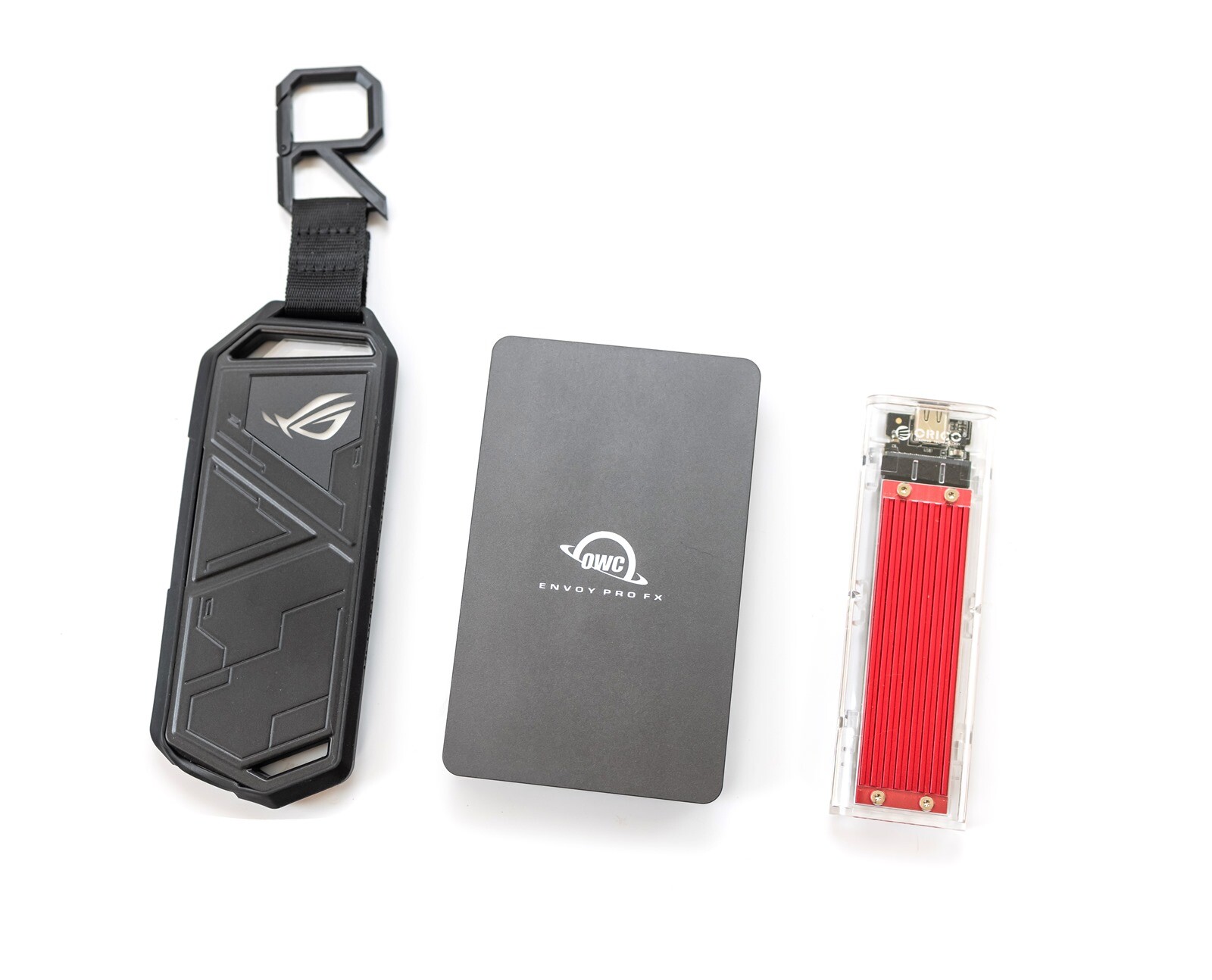 和阿輝手上另外兩組外接 SSD 相比,就算是以往阿輝認為很重的 ROG Strix Arion SSD 固態硬碟外接盒相比都可以算輕巧了,更不用提塑料材質的產品了;不過有一說一 OWC Envoy Pro FX 也是其中質感最好的一組