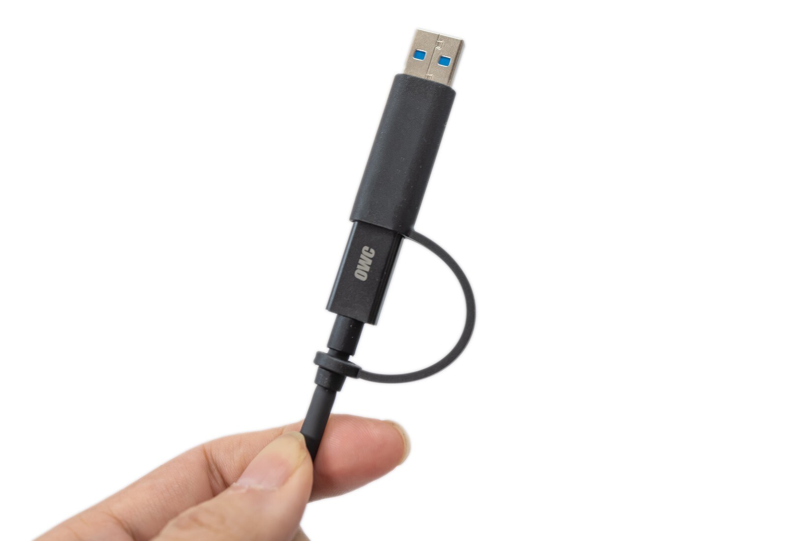這條線材還真是不錯,一條直接搞定 Thunderbolt / USB 3.2 Gen 2 / USB A 轉接頭內建,長度則為 70cm,不論是新舊電腦還是 Android 手機平版,都可以使用 OWC Envoy Pro FX 沒有任何問題,這樣的整合線材阿輝也認為給分開多條線材還要方便,甚至這線材如果有另外銷售的話阿輝應該會考慮自己多買幾條給其他設備使用