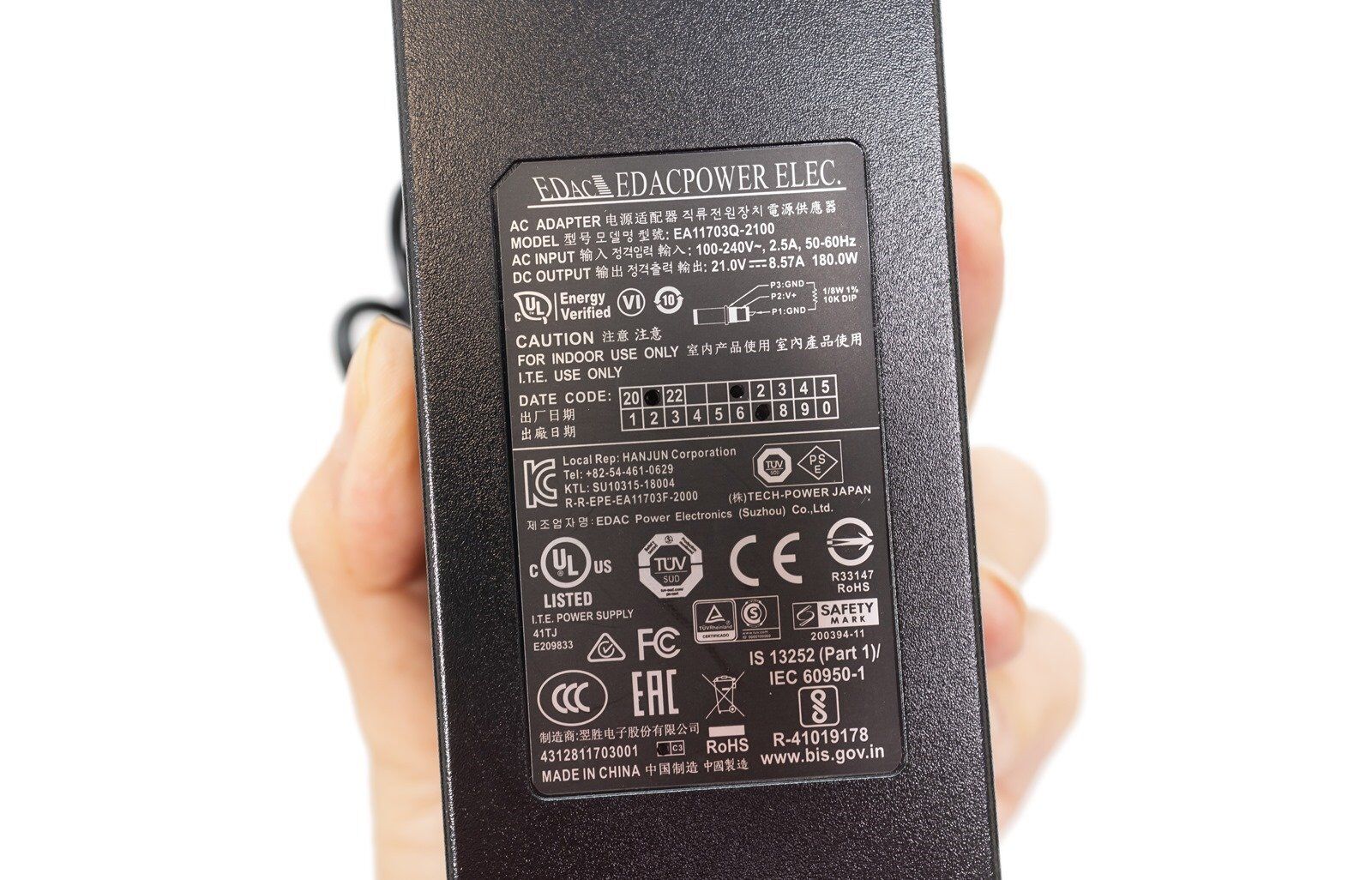 與 18 Port 不同,16 Port Gen2 ThunderBolt 3 Dock 盒裝中就直接附上 180W 的 DC 變壓器,另外大概也因為規範的限制,在對於筆電供電充電部分則是提供 PD 85W 。