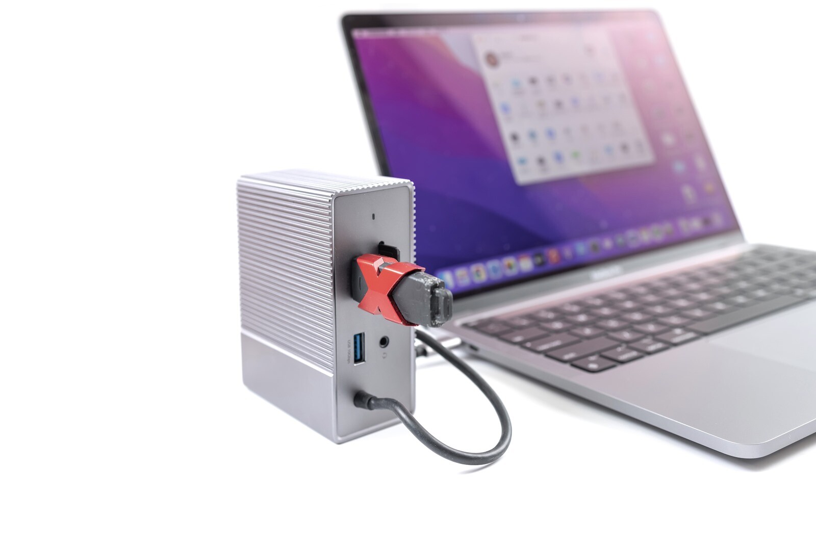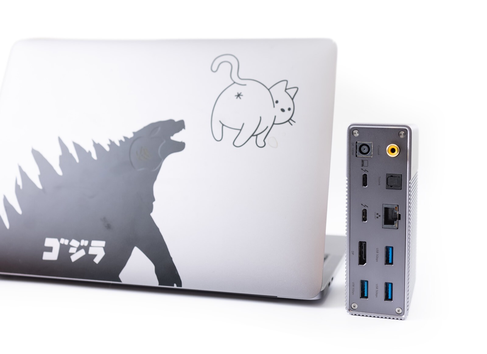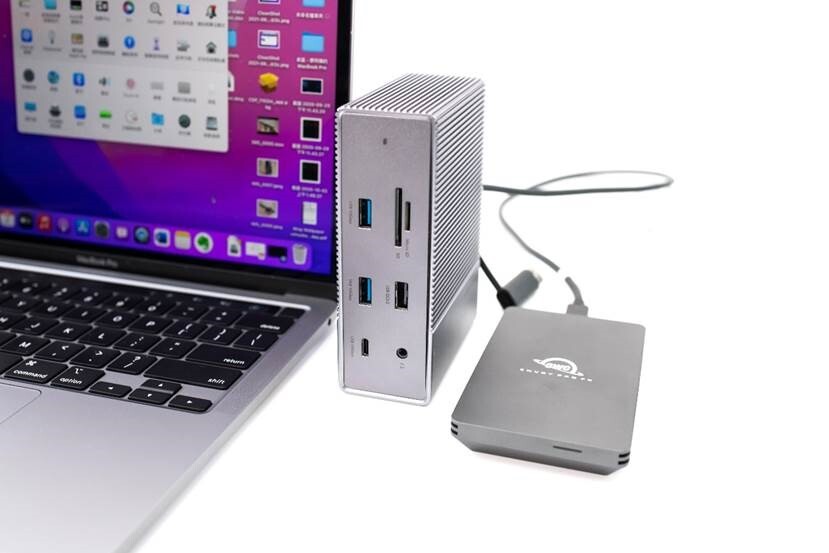 最後是 16 Port Gen2 ThunderBolt 3 Dock,不要看 16 port 似乎比前面介紹的 18 Port Gen2 USB-C Hub 連接埠少,其實 16 Port 這一款是目前 HyperDirve 產品線中高速連接埠最多的產品,也可以看做最旗艦的一款,不過要注意儘管 16 Port Gen2 ThunderBolt 3 Dock 有向下相容 USB,不過還是強力建議要用就用 ThunderBolt 3 連接才會是完整的功能,首先你只要是進幾年的 Mac 電腦就沒有問題,Windows 筆電或是桌上型電腦則就要看看主機有沒有支援 ThunderBolt 3 。