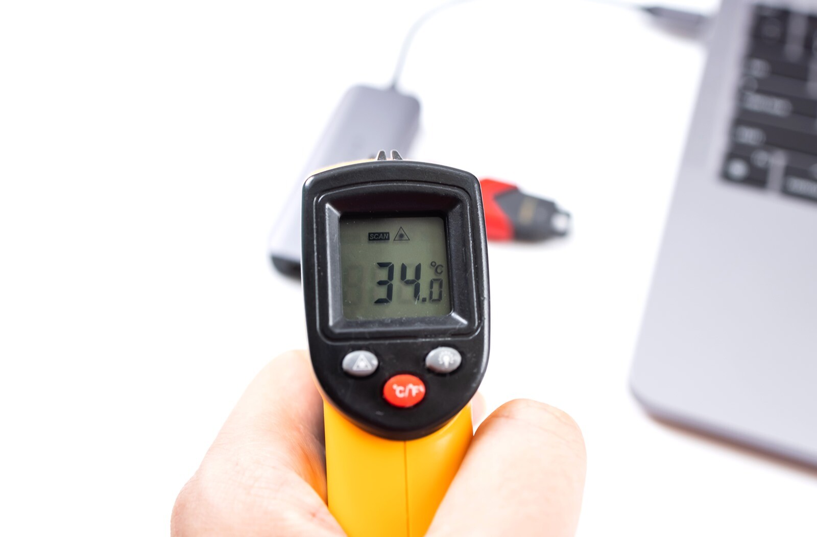 金屬機殼也讓 4 IN 1 USB-C Hub 的散熱表現十分優異,實測拷貝 100GB 資料後,機身溫度也僅 34 度,表現真是小小身軀超乎大家的想像。