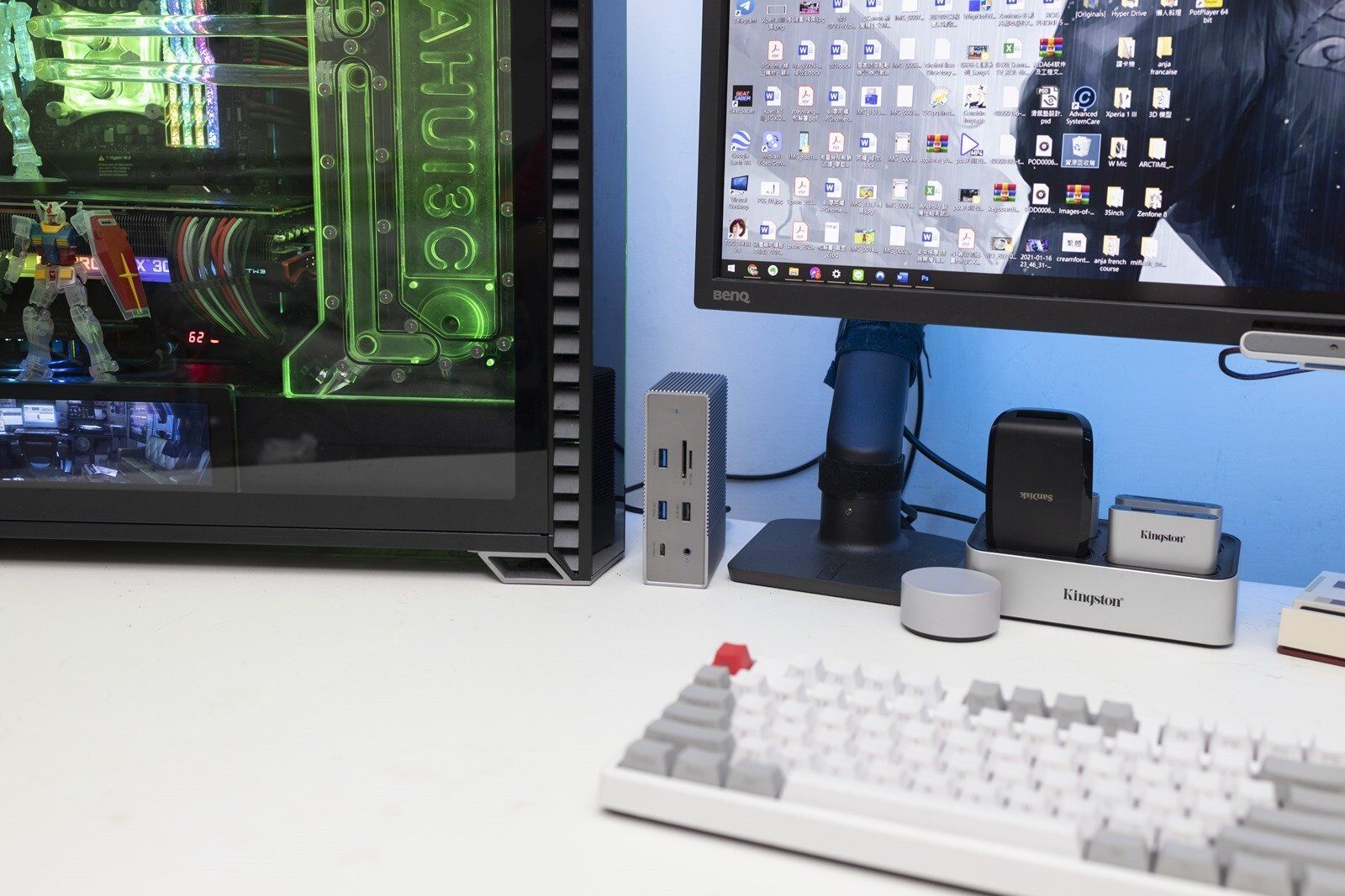 把 18 Port Gen2 USB-C Hub 擺在阿輝的桌機工作桌上也實在很讚!除了好看之外,也讓電腦接口更豐富,並且可以放在桌面上更方便使用。