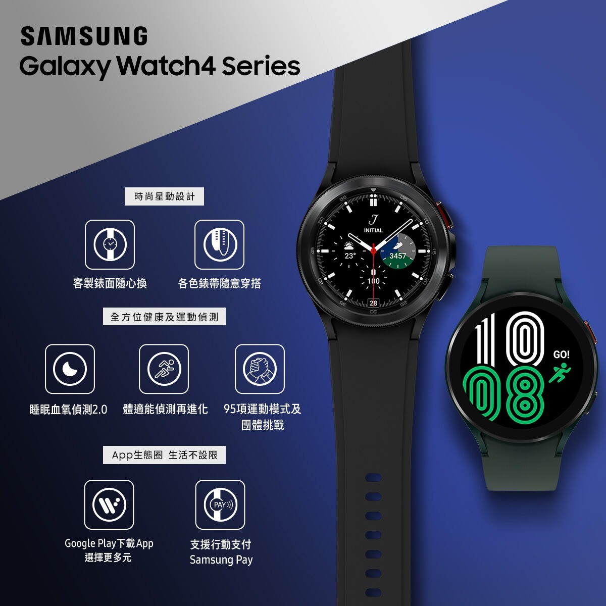 此款智慧手錶配備一系列健康功能,用以追蹤用戶日常活動並維持健康動力,發揮最佳的體能表現。用戶可獲得各式各樣的引導式健身選擇-透過「團體挑戰」向親朋好友下戰帖,或動手打造家庭健身房,串聯 Galaxy Watch4 至完成配對的三星智慧電視,以電視螢幕查看消耗的卡路里和心跳,輕鬆追蹤各項數據。當使用者準備休息時,Galaxy Watch4 系列將針對用戶的睡眠模式,提供較以往更鉅細靡遺的分析圖;用戶能運用配對的智慧型手機偵測打鼾聲,同時獲得睡眠期間的血氧 4 濃度數據,搭配優化的「睡眠評分」功能,用戶可藉由了解睡眠模式獲得更佳的休息。
