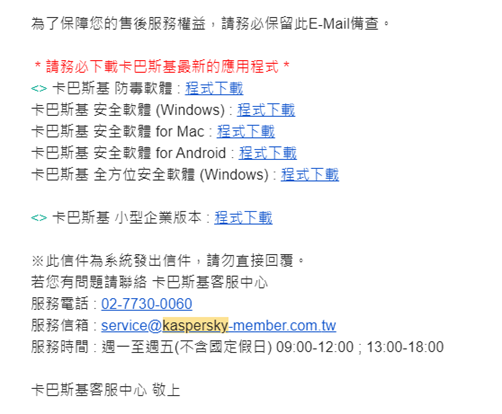 信件內也同時會提供給你程式下載的連結,確保大家使用的是最新的應用程式,FOR WINDOWS/Mac/Android 的下載連結都可以直接在 mail 中拿到。。