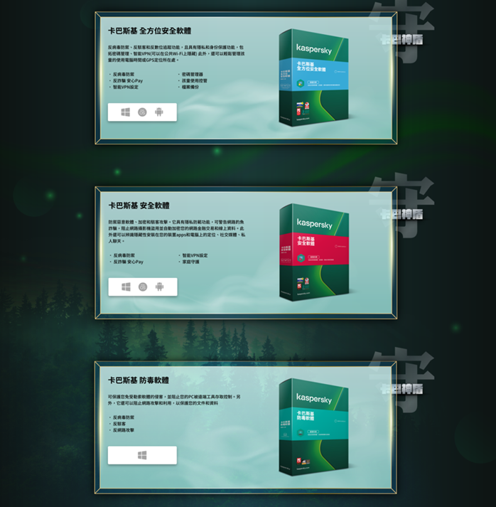說起防毒軟體,在從前那個線上遊戲百家爭霸的年代,就不能不提及卡巴斯基這一款由俄羅斯研發的超強防毒軟體,這也是當年絕大多數玩家的防毒軟體使用首選!網路病毒日新月異,各家的防毒軟體在這些年來當然也跟著一起共同成長、努力的打造給使用者更安全的網路環境!阿輝今天要跟大家介紹的 Kaspersky『卡巴斯基全方位安全軟體』版本,除了基本的反病毒、反駭客以外,也還有其它例如反數位追蹤、密碼管理和智能 VPN 的功能,甚至也能提供管理孩童使用電腦的時間和可使用內容的功能,可說是一款病毒防禦功能強大,且涵蓋各種網路安全使用情境所需功能的防毒軟體;現在就讓阿輝來開箱跟大家分享 Kaspersky 卡巴斯基全方位安全軟體的強大功能吧。