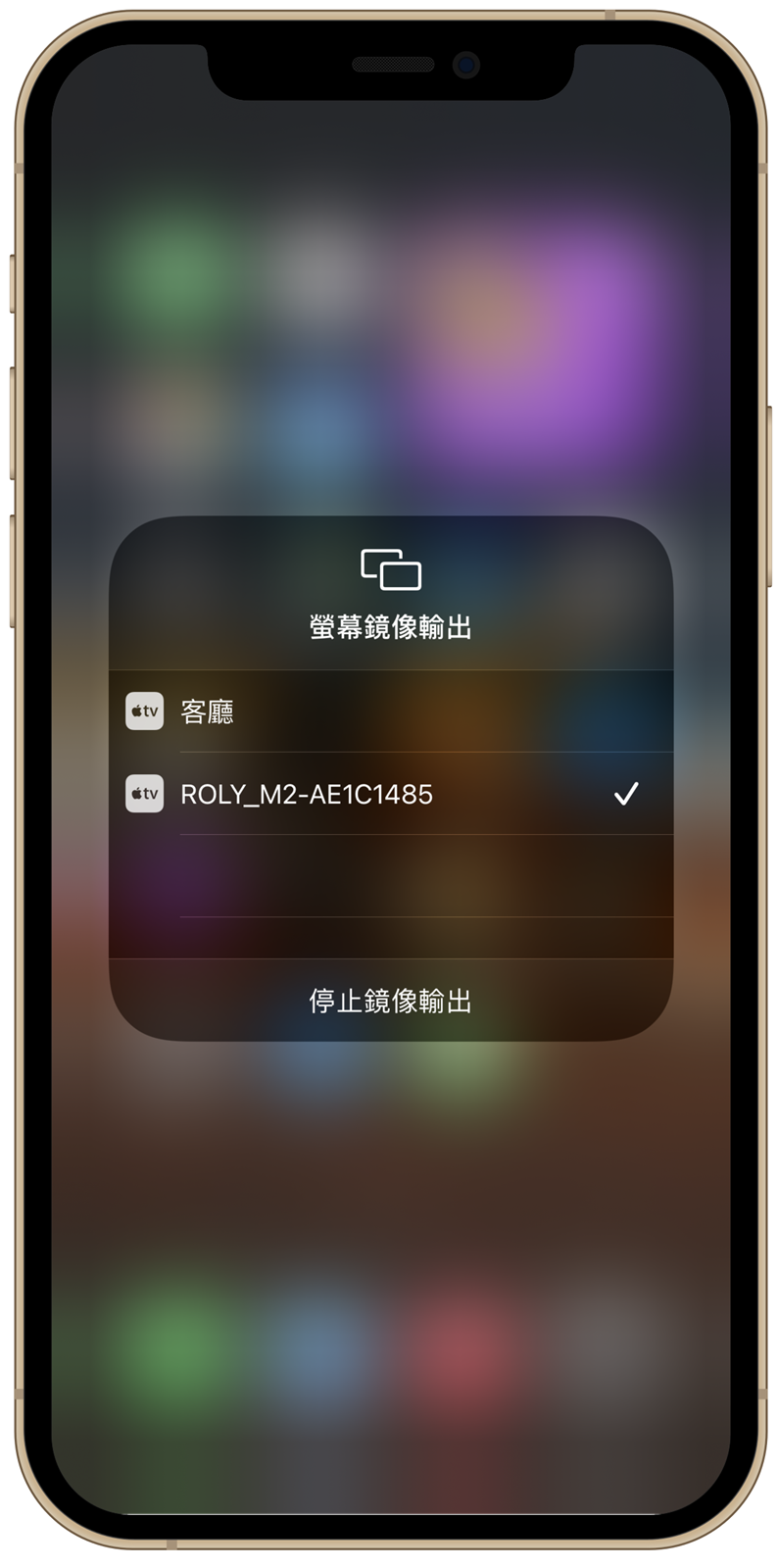 除了手機直接用充電線就能透過線材使用 ROLY M2+ 之外,iPhone 也能無線投影,只要直接使用 Airplay 在鏡像輸出的部份找到 ROLY M2+,就可以直接投影到牆面上。