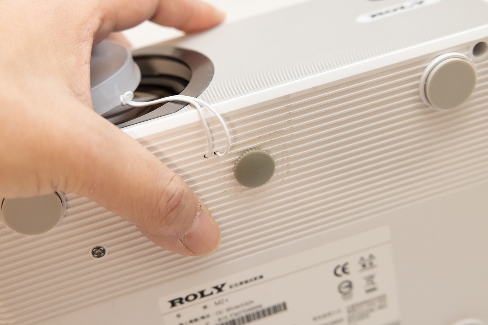 首先最簡單的就是帶著記憶卡或是隨身碟,而裡面有會議資料或是影片,那就是最簡單的,不用在意網路環境或是藍牙或是電腦手機等等播放裝置,隨插即用,ROLY M2+ 從機身上就可以看出具備卓越的各式連接能力,剛剛本來要在介紹外觀的時候放置這張,但有種破梗的感覺,所以拉到這個部分再介紹;除了連接能力完整具備幾乎所有連接埠以外,造型也相當亮眼,一半平滑結構一半因應散熱與發聲的孔洞設計出細緻的條紋,看起來更有質感,手感也比較有層次。