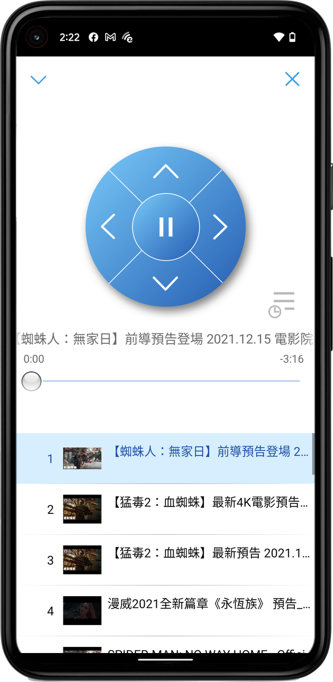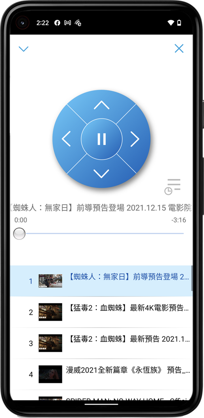 而且可以直接透過 EZ Cast 控制,不管是播放清單或是快轉、倒帶都可以。