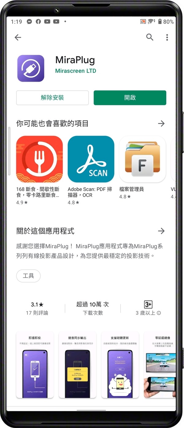 而針對投影的部份,有多簡單呢?真的是超級簡單!使用 Android 手機的話,也可以直接使用手機連接 ROLY M2+ 來使用,只要下載專用的 APP 就可以透過手機控制,並且直接投影出手機螢幕畫面到牆面與布幕上!