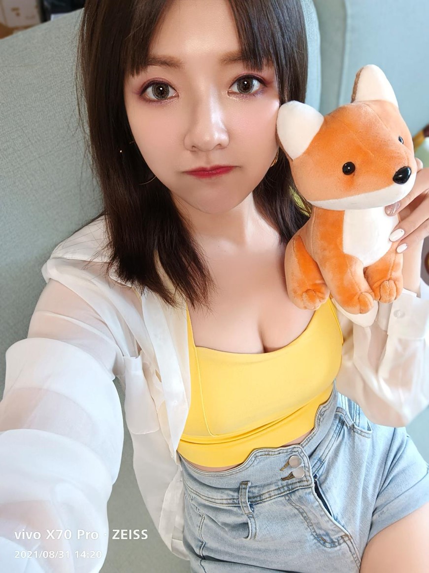 前鏡頭則是採用了 3200 萬像素加上 vivo 評價極高的自拍美顏加持,這裡我們也請出妹子自拍照提供給大家參考