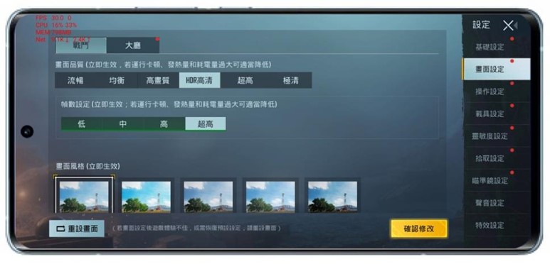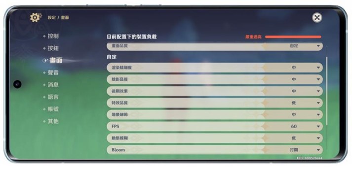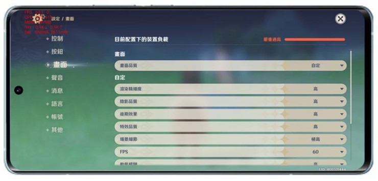 目前公認手機上前幾大高負載的大型遊戲原神,這裡阿輝有測試預設設定(中畫質)與極高畫質兩種設定,並都開啟 60 fps 模式來進行測試