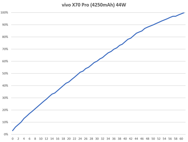 X70 Pro 充電部份支援 44W 充電,這裡我們將機器消耗到自動關機,接上原廠充電器與原廠線材開機充電(待機狀態),並觀察紀錄充電實際的速度與時間。