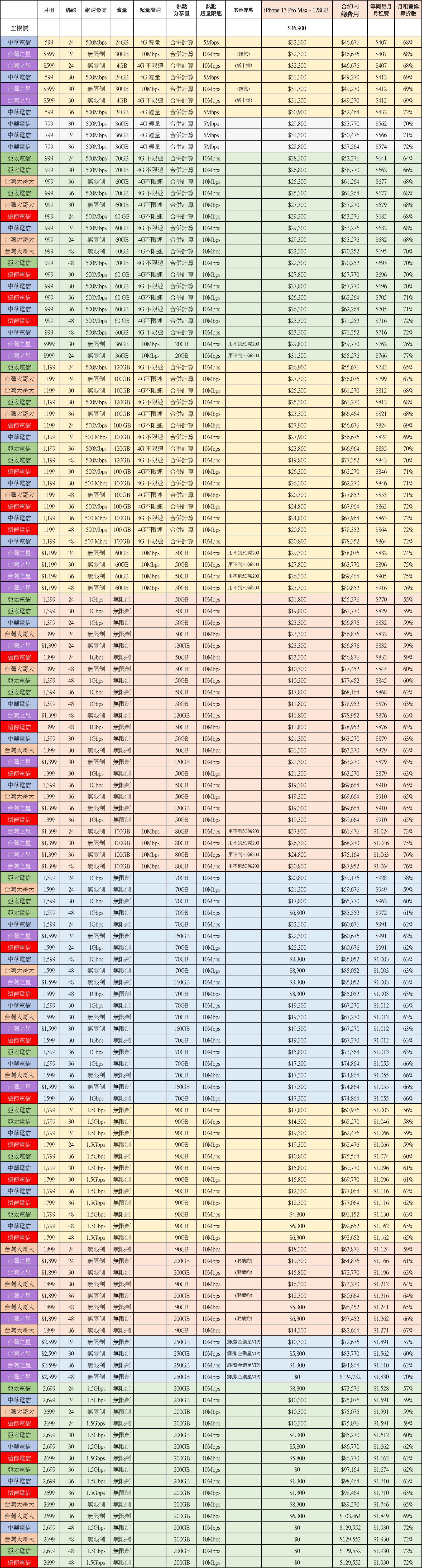 今年的 iPhone 資費彙整攻略也來啦!阿輝將台灣 5 家電信公司(中華/遠傳/台哥大/台灣之星/亞太電信)幾百組的資費搭配 iPhone 13 全系列三款機型,與共四種不同容量的購機方案全整理彙整在一起,彙整提供可以讓大家自行排序的表格;並也針對最多網友在詢問那到底『綁約好還是買空機好?』的的問題,花了時間試算各家方案的費用組合,並加以排序應該可以給大家一些比較實際的參考。更多詳細資料與消息也請 按讚訂閱阿輝粉絲團