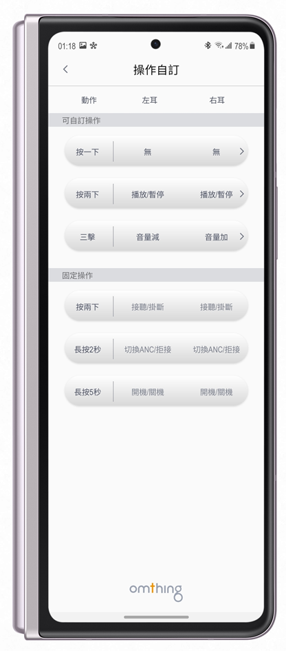 除了配對簡單,使用時開蓋即通之外,還能使用 APP 將使用個人化,可以自由設定按兩下、按三下的是接聽、掛斷或是調整音量,可以配合每個人不同的使用習慣變更,不用被硬性設定在耳機原本的規範當中,對於愛好自己個人化配件的朋友來說,這點一定大加分。