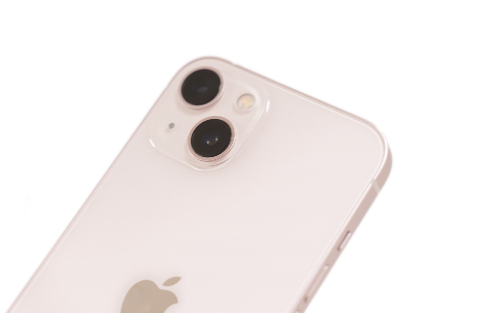 iPhone 13 在機身背面設計是採用亮面玻璃加上為鋁金屬材質邊框霧面處理的組合,鏡頭區域則是霧面玻璃的搭配