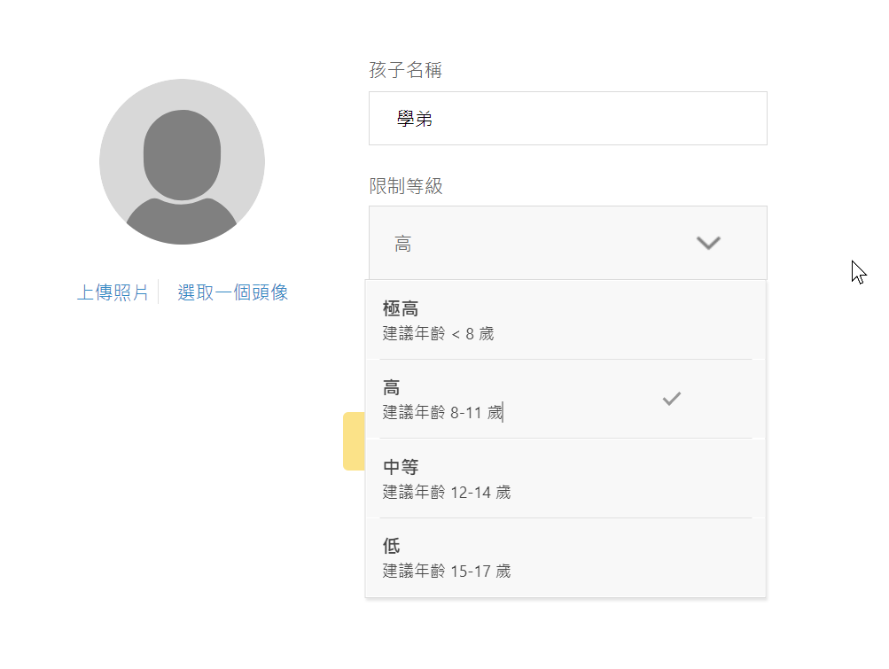設定很簡單可以依照年齡作選擇