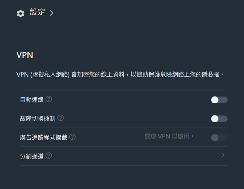 非常簡單就可以快速讓系統與遊戲進入安全 VPN 網路保護狀態