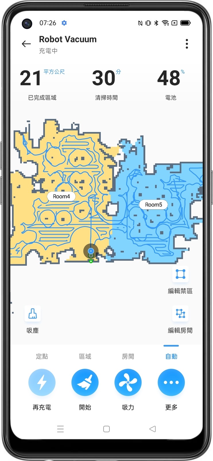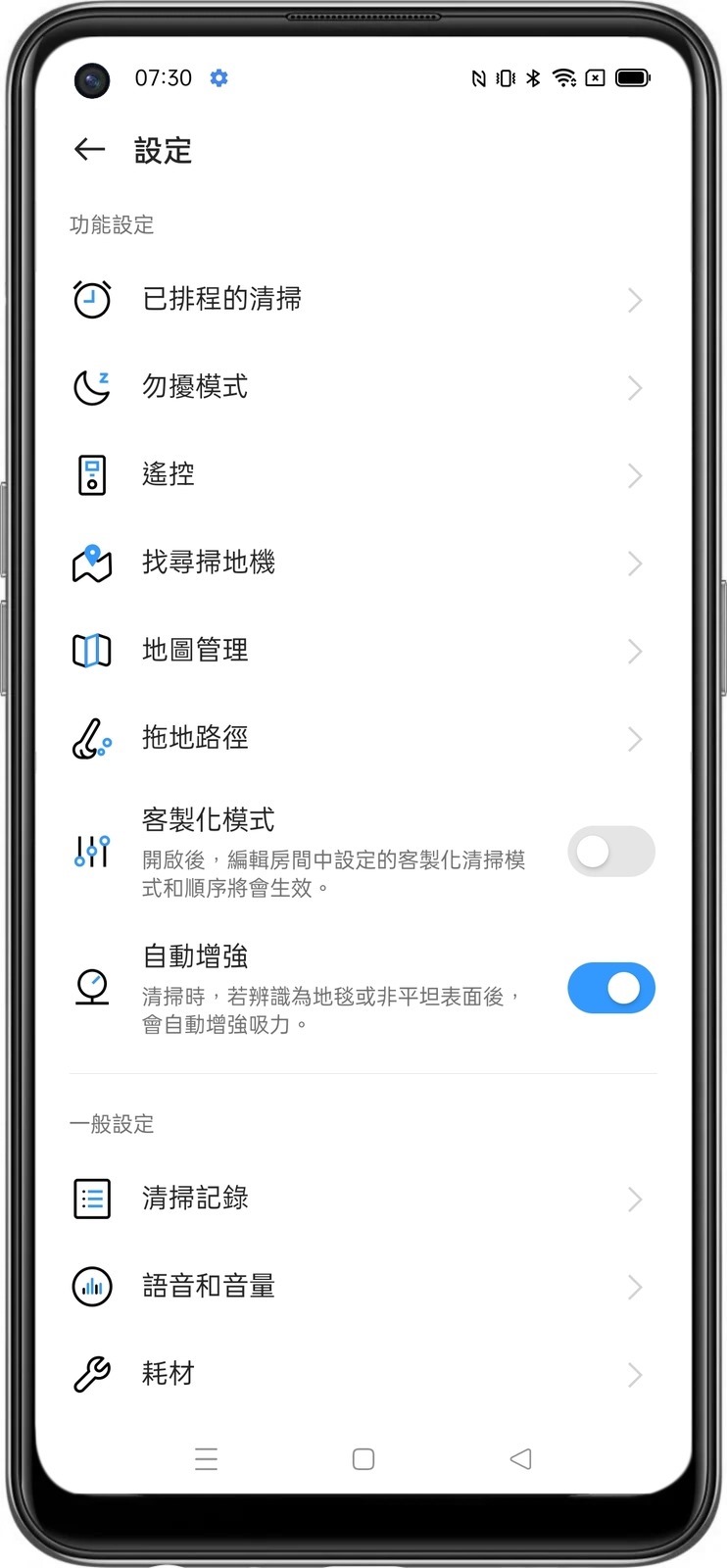 除了地圖的部分,realme Link APP 還有很多功能,像是可以預先排程打掃或是設定勿擾,還可以直接透過 APP 遙控機器人而不是仰賴它的智能運行,或是管理地圖等等。