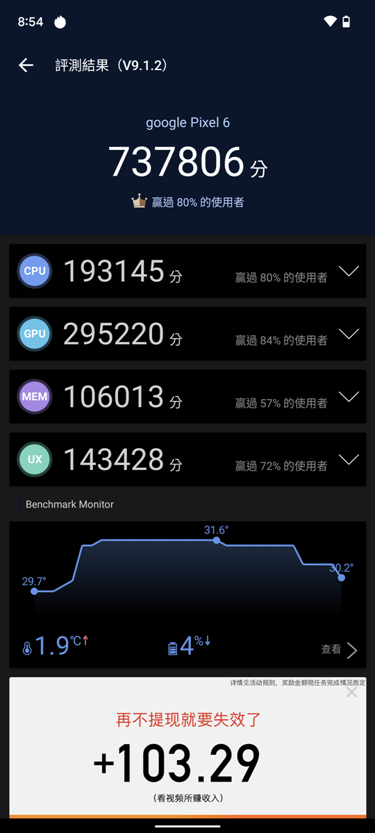 Pixel 6 Pro 性能電力實測抓圖