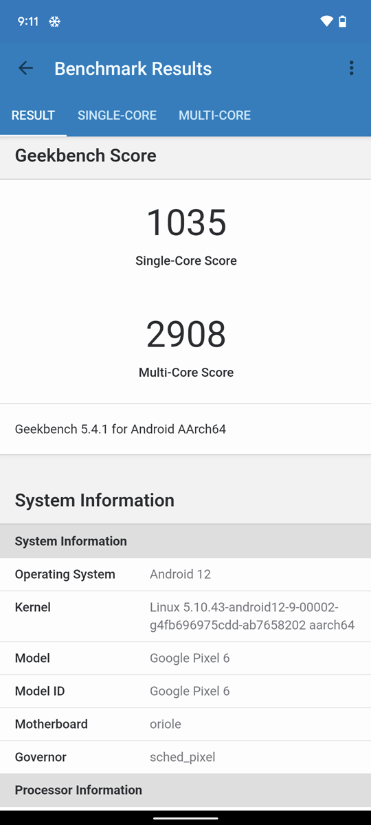 Pixel 6 Pro 採用 Google Tensor 處理器與 12GB 內建記憶體的規格配置,Pixel 6 則是 8GB 記憶體,不過實測結果可以說 Pixel 6 Pro 與 Pixel 6 的性能幾乎是相同的表現,更多資料也可以阿輝資料庫 https://reurl.cc/MxdjK 內有大量阿輝多年測試手機/平板的實測資料;實際感想大概可以說最接近的處理器應該是高通的 S870 處理器,甚至在圖形性能部分表現更為優異,大家也可以參考阿輝整理 SoC 的排行彙整一文,不過目前似乎有些相容性可能要注意,其中測試軟體中的 GeekBench 5 的 Computer 測試無法正常完成跑分。
