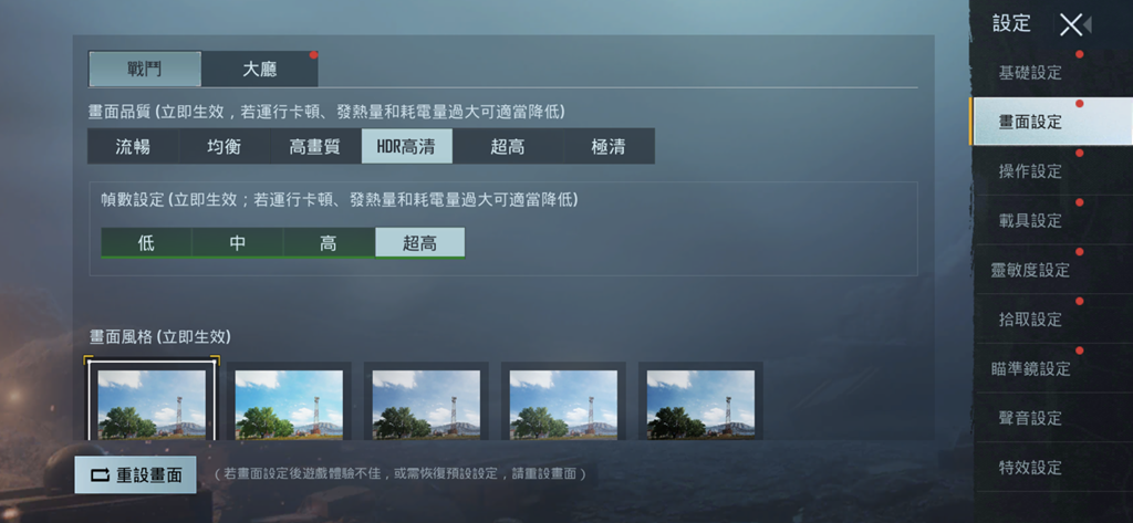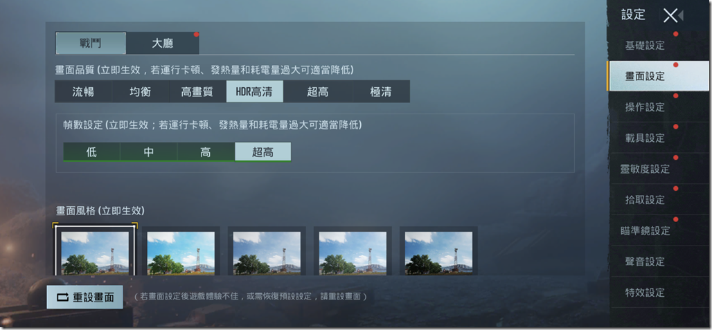 這裡直接以射擊類生存手遊 PUBG Mobile 版本,解析度與張數設定開到不特別破解的最高畫質組合,並進行實際 20 分鐘的遊戲測試。