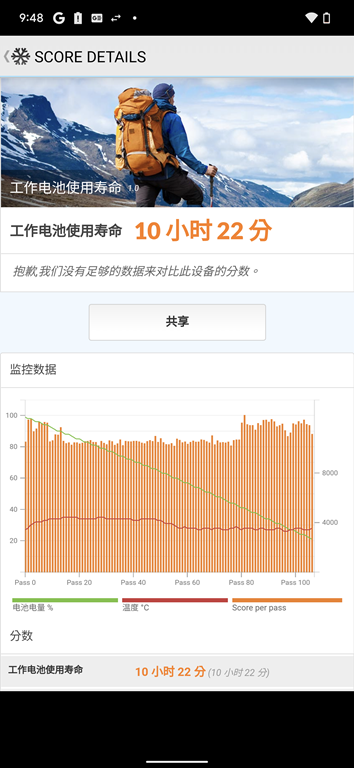 - 設定螢幕更新率為 120Hz 模式 + 解析度 QHD+ 組合,測試結果為 10 小時 22 分鐘