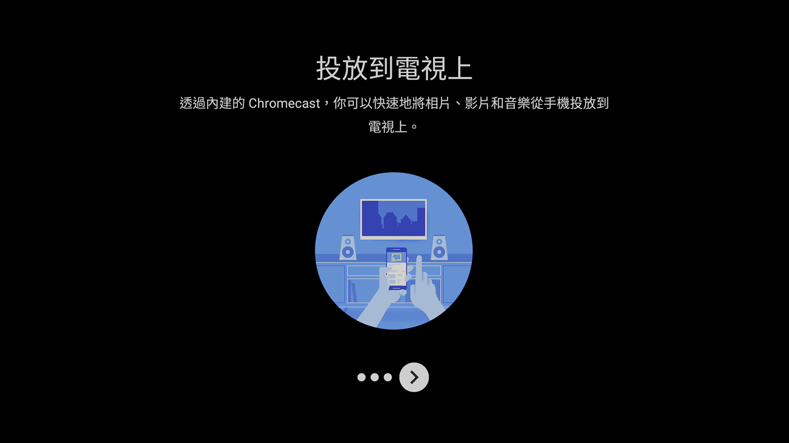 阿輝在這整個流程當中,可以很簡單的透過手機快速設定完成,接著等待更新完成,就可以看到簡單的使用介紹。不只是說明由 Android TV 提供技術,還可以透過語音助理控制,並且也能透過 Google Play 商店下載應用程式。