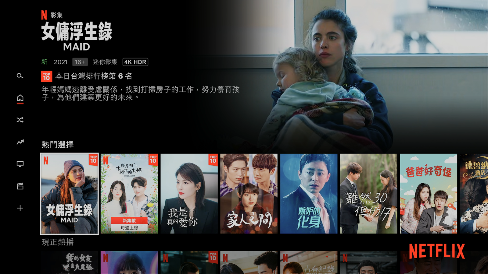 Dynalink Android TV Box 電視盒的設計簡單直覺,只要設定完畢之後,不管是長輩還是小朋友都能輕鬆使用,基本上就是打開電源,按下想使用的串流平台就好了;像阿輝平常都看 Netflix 的話,只要拿起遙控按下電源開關,再按 Netflix 就好,就會直接進入 Netflix 應用程式畫面中。