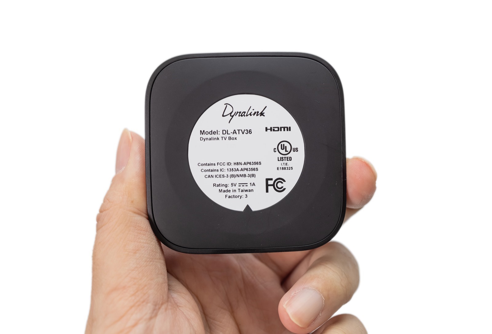 機身下方則是清楚標示相關資訊的貼紙,不只有品牌也有型號,如果買一段時間以後盒子丟了又忘了型號,翻看底部就知道相關資訊了,有注意到 Dynalink Android TV Box 可是 Made in Taiwan 的優良產品!