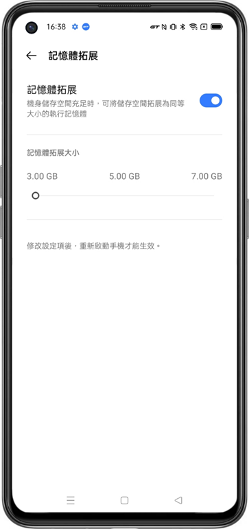 realme GT Neo2 也支援記憶體擴充技術,可以利用內建 UFS 3.1 空間模擬記憶體,最高可以支援 +5GB