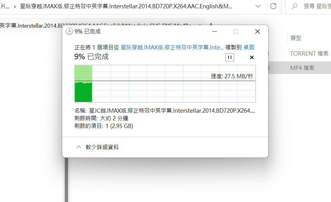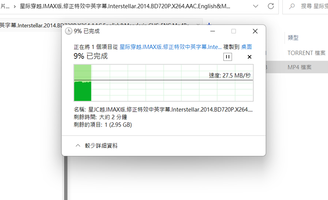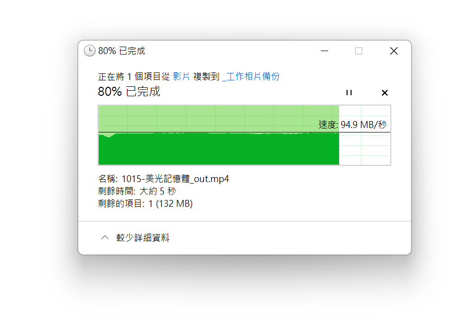 當然不只測試光世代連線,阿輝也將 Dynalink DL-WRX36 AX3600 連上家中的 NAS 設備(有 SSD 快取,GbE 與 Dynalink DL-WRX36 有線連接),這時因為 Dynalink DL-WRX36 AX3600 全連接都是 GbE 網路連線因此不用擔心被速度限制卡住,實測達到了 94.9MB/sec 的高速,實測非常接近 GbE 有線網路的理論速度上限了!真是超厲害,而且還是透過無線連線方式連線