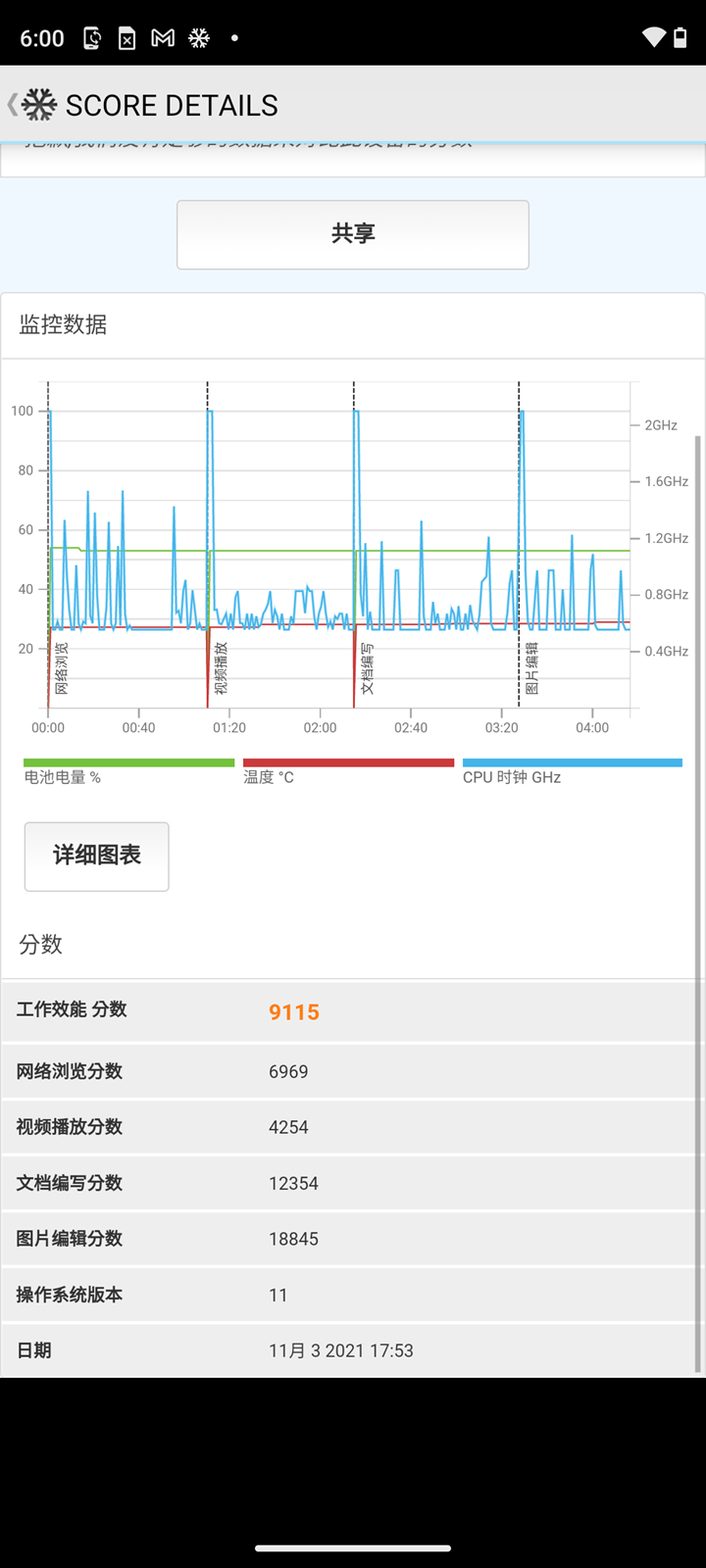阿輝實際測試 edge 20 fusion 內建電池容量為 5000 mAh,實測電力部分以 PCMARK 做標準測試,測試 80% ~ 20% 間的電力運行,模擬上網、工作、遊戲的混合應用,測試方式與標準可以參考這篇說明。