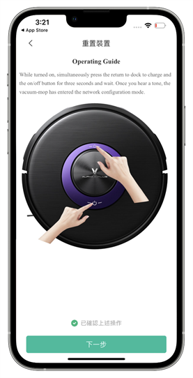另外如果是想要將雲米 Alpha2 Max 的設定完全回復原廠設定的話,則是要將 HOME 鍵與開關鍵同時長按住 10 秒後可以叫出這個功能,掃地機器人也會用語音提示『機器將回復出廠設定』後,要再持續長按住另一個 10 秒才會執行,一直到掃地機器人再用語音告訴你『恢復出廠設定』的聲音後,再重新啟動掃地機器人一次才算完成。