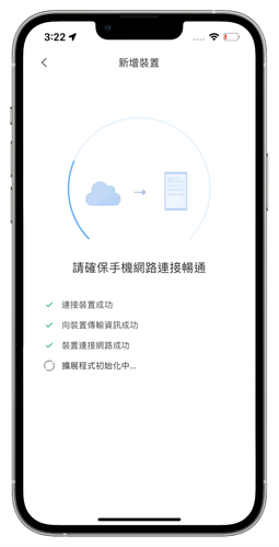 接著選擇連接家中 2.4GHz 的 wifi 訊號、並輸入密碼後讓掃地機器人和路由器做連接,手機的網路也務必要保持暢通,一直到 APP 顯示說明拓展程式初始化中的畫面。