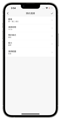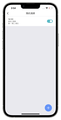 進入預約清掃後在右下角的『+』號點一下就可以安排掃地機器人的工作週期,據阿輝以前做過家事幫傭的朋友說,這個工作排程表就像以前幫傭家庭時安排的工作,每一、三、五掃地,二、四做拖地,用規律的清潔頻率和固定工作內容來維持家中的清潔整齊,現在讓掃地機器人就能代勞這件事甚至隨時家中出現臨時需要被清潔的狀況時,也能讓雲米 Alpha2 Max 輕鬆簡單的幫你完成。