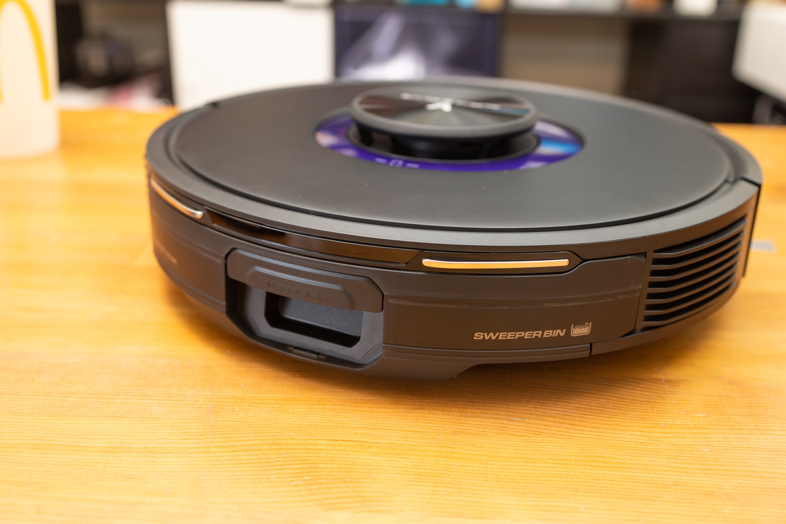 我們從主機的側邊可以看到側邊印有『SWEEPER BIN』的字樣的地方就是雲米 Alpha2 Max 的二合一的集塵盒水箱,盒子中央有個看起來有把手的地方印有 TO PULL 的地方拉開就可以把二合一集塵盒水箱拉開!