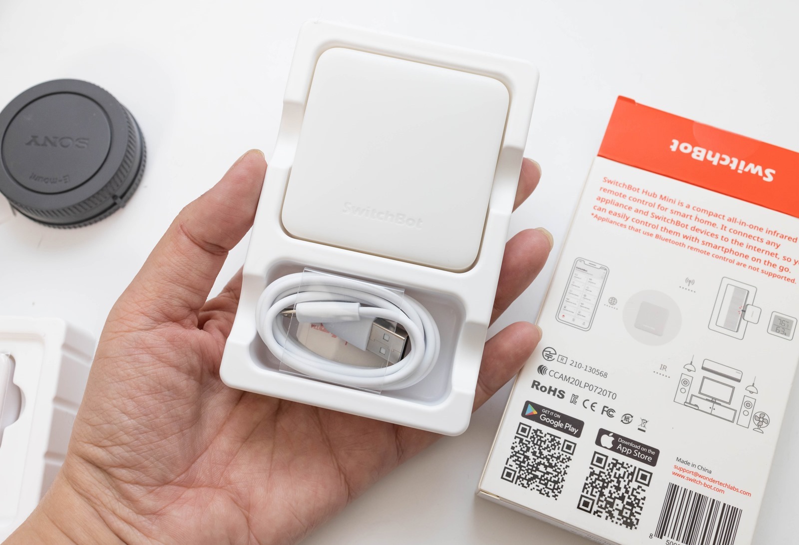 注意 SwitchBot Hub Mini 需要外接電源,採用 MicroUSB 電源連接方式,本身十分省電也僅需 5V/1A 變壓器連接即可